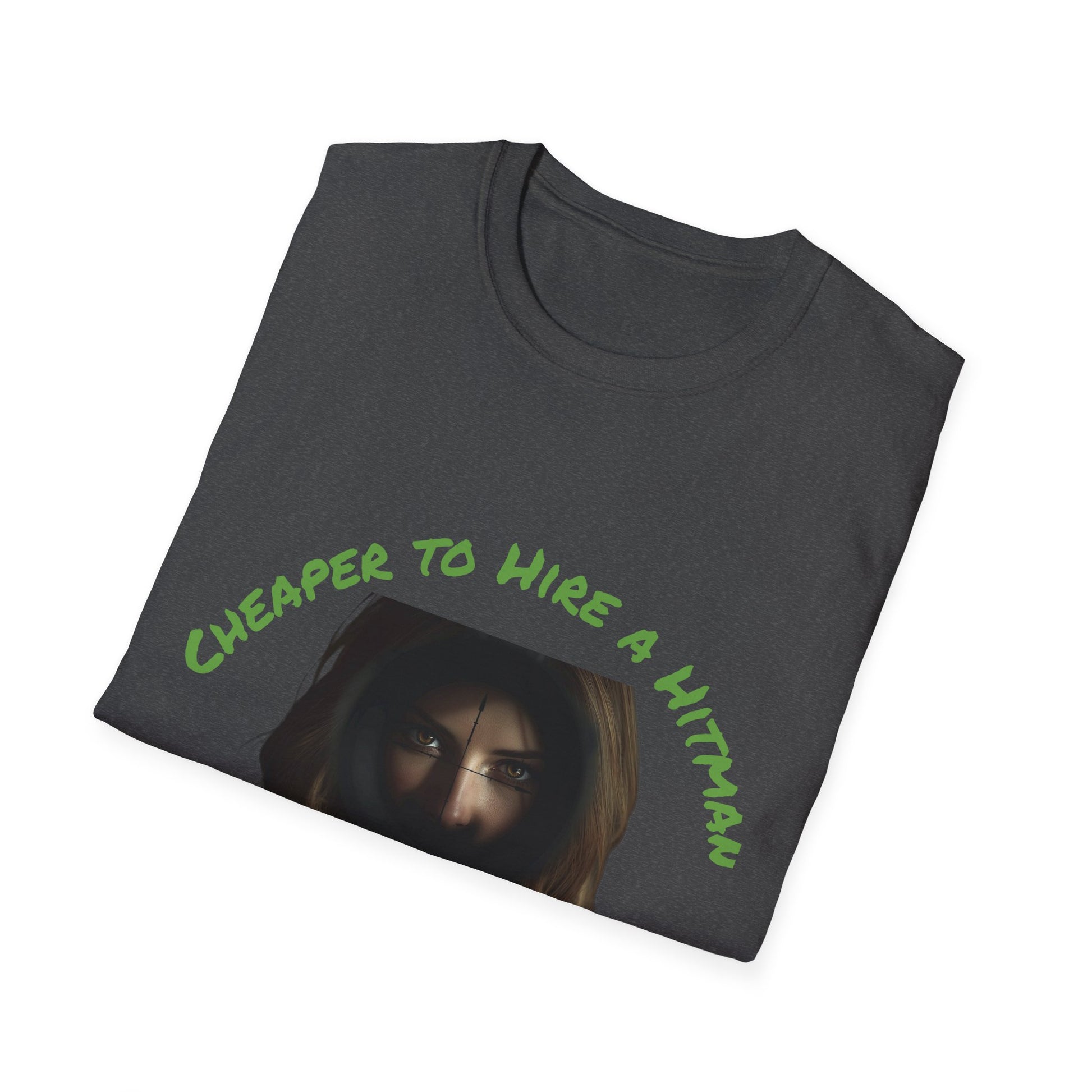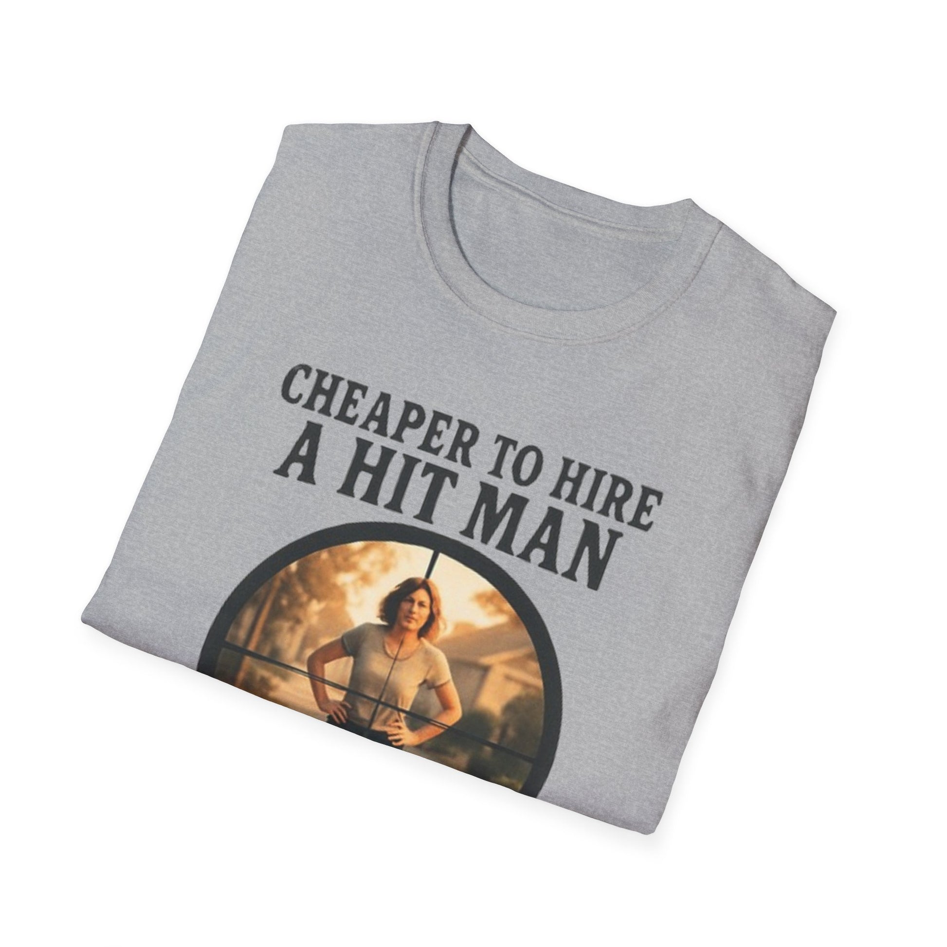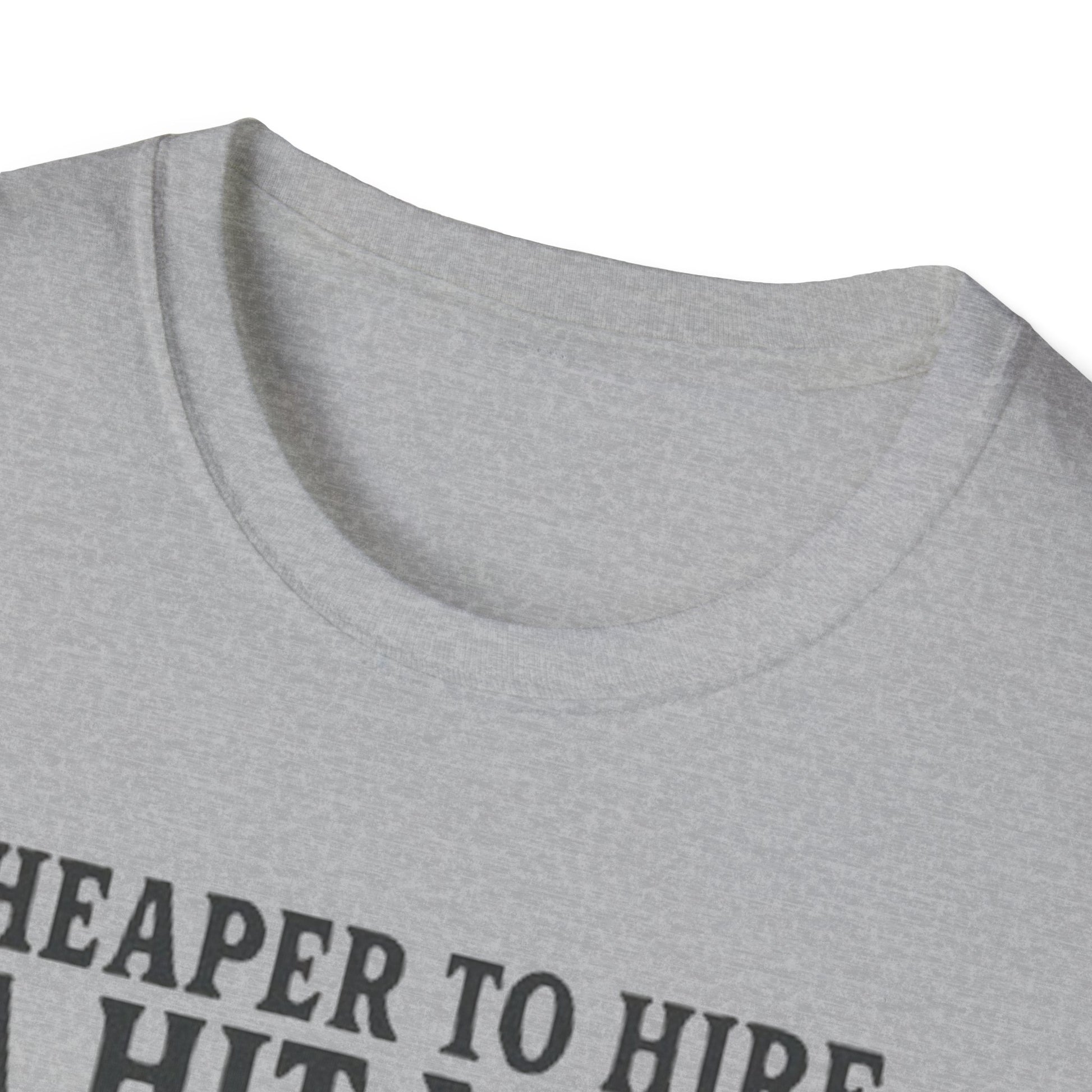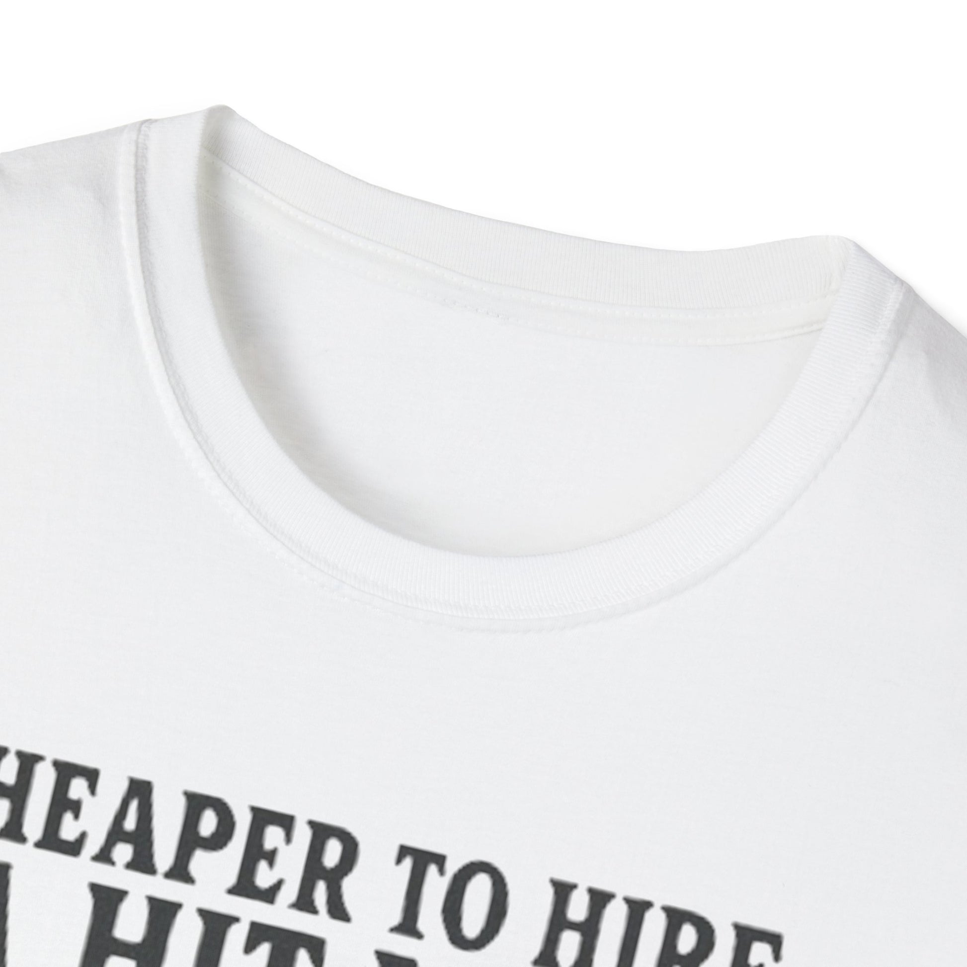 Humorous Quote T-Shirt, Funny Tee, Gift for Friends, Casual Wear, Unisex Softstyle T-Shirt, Cheaper to Hire a Hitman