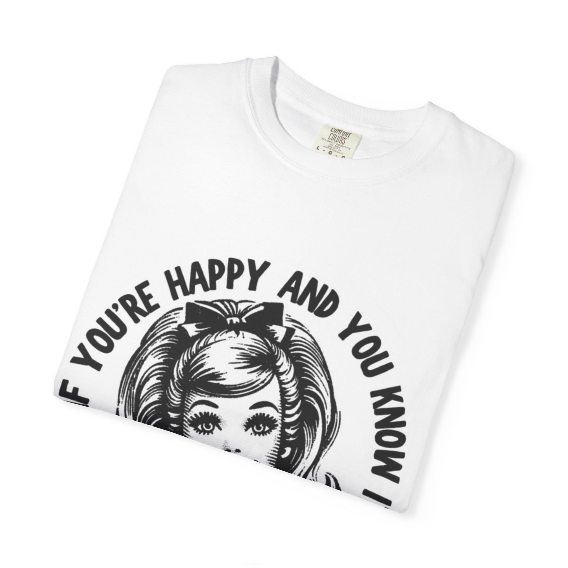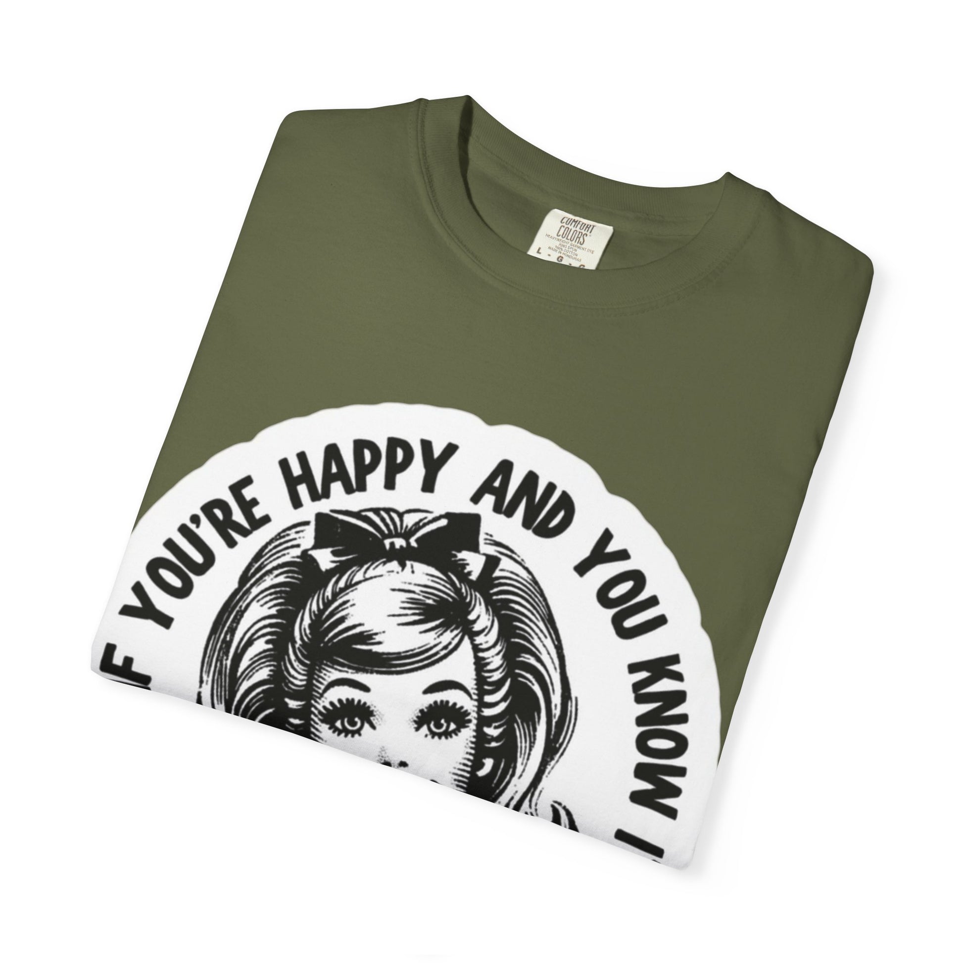 This relaxed-fit garment-dyed tee brings wry, vintage humor to casual days. A retro smiling face and bold black lettering read like a cheeky PSA: “If you’re happy and you know it — it’s your meds.” The print’s slightly distressed, high-contrast look pairs with the soft, broken-in hand of post-dyed cotton for a lived-in vibe. Wear it to low-key hangouts, errands, or layered under a jacket when you want to spark a knowing laugh without shouting. It’s steady and comfortable for everyday use, and the understated monochrome design fits easily into a capsule wardrobe while adding an offbeat, personal touch.